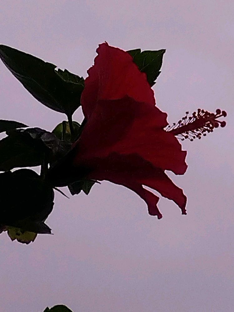夕焼け空のハイビスカスを
