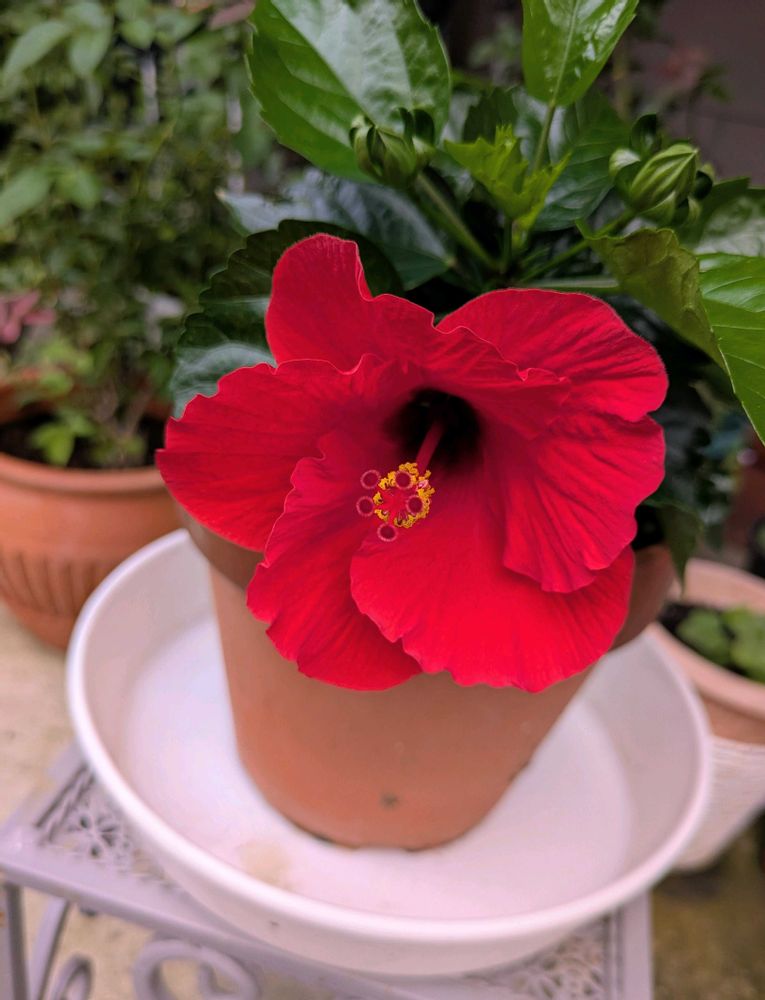 状態、アップしますが(忘れたらごめんなさい🙇…(^_^;)) 『咲く気有るんかな…?』って心配になるくらい、葉っぱバサバサしてましたが… おぉ~っっ🌺ლ(^o^ლ)…って感じに