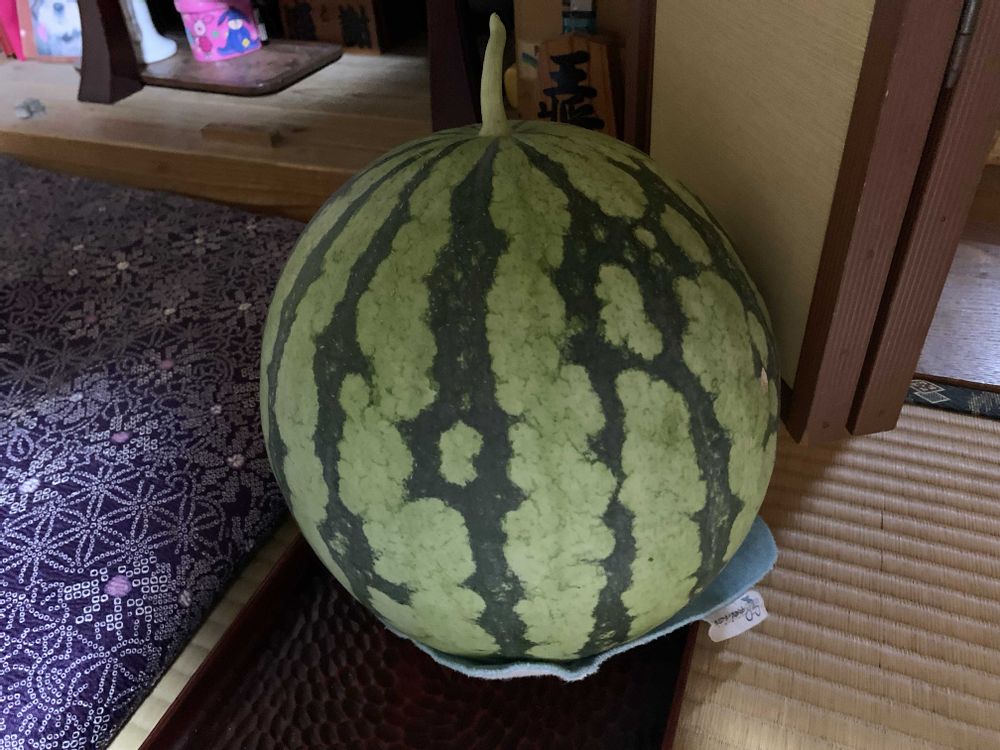 今年最後の大玉すいかを収穫しました。仏壇への御供えにします。