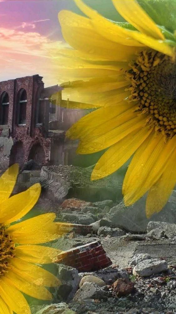 ④.⑤は戦地に咲く向日葵をイメージして 庭に咲くミニ向日葵を重ねました
