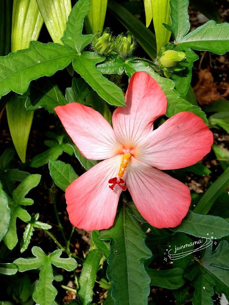 最初のうち形がおかしなお花ばかり咲いていたアベルモスクスも ちゃんとした形のものが咲き出しました