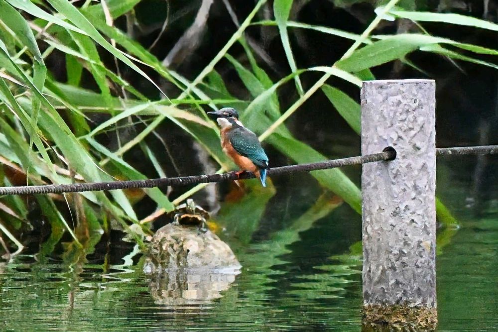 おめめが可愛い💕カワセミさんの下の石にいるのは亀さんかな🤗