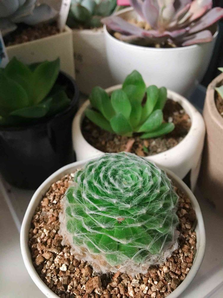 センペルビウムは多肉というより、標高の、高いところに(原種の原生地は主にヨーロッパの山の上)生えているものなので、日本の蒸し暑さに弱く、寒さには強いです。雪が積もっても、霜に当たっても平気です。これからの季節は外に出しっぱで大丈夫。夏は、涼しく半日陰に置き、梅雨、長雨の季節は雨避けします。基本、家の中はNGです。間延びします。
