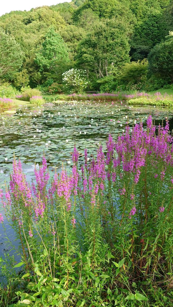 星ヶ丘公園の水辺を縁取るミソハギの花