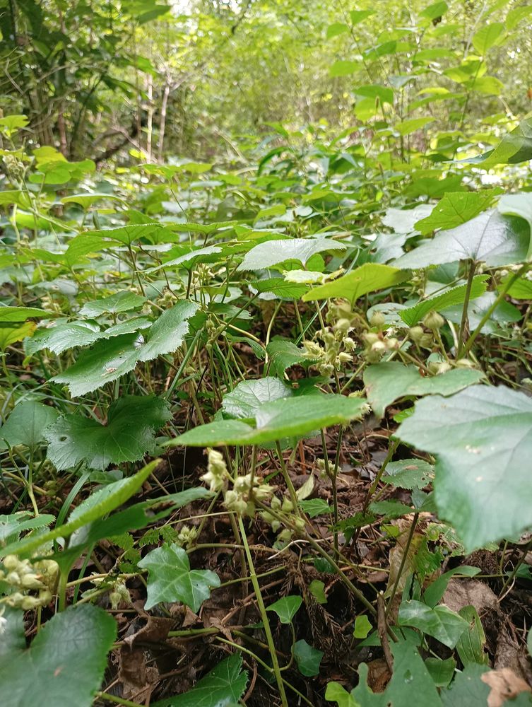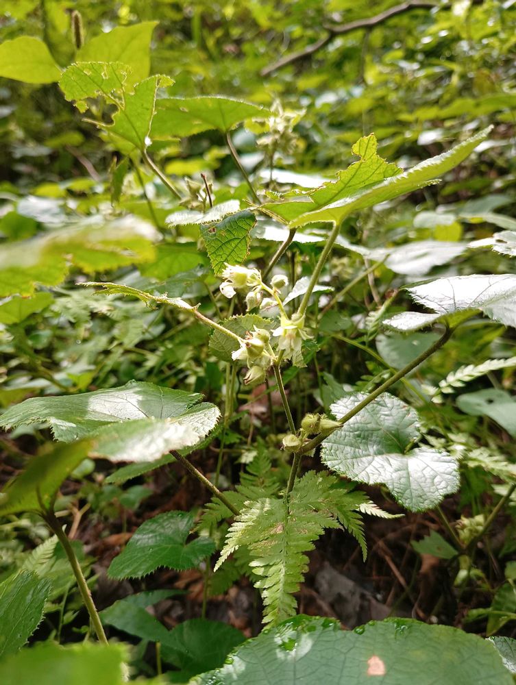 暗い場所に群生してるフユイチゴ、もうすぐお花は満開になりそうです。