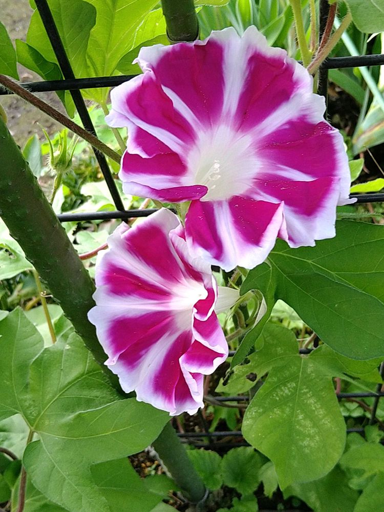 アサガオ,白い縁取りと筋入りて,素敵ですね💓😄