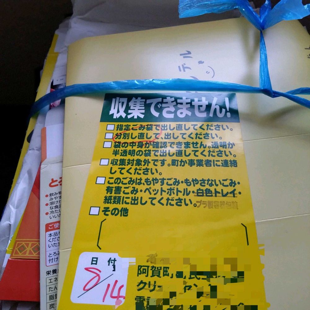 今回出した紙ゴミはカタログギフトのカタログ(冊子)と菓子の空箱を潰した厚紙を一緒に束ねたのがマズかったのかも🤔