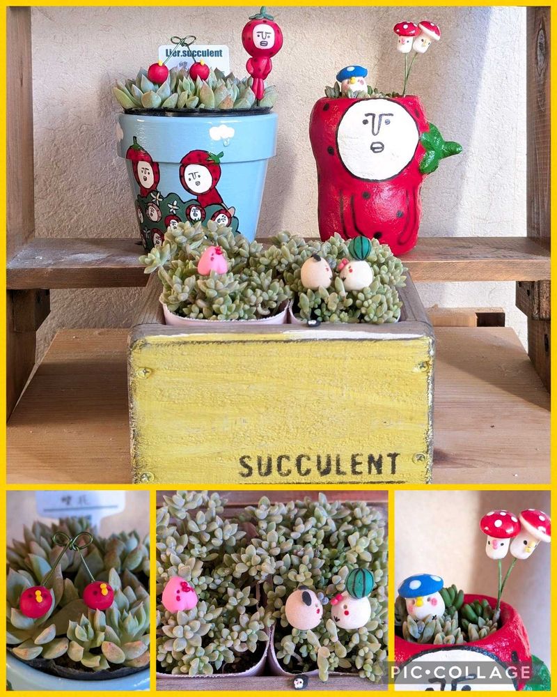 45さん発案、えつこさんのいちごマン鉢🍓といちごマンのいちご狩りのリメ鉢🍓といちごさんのいちごマンピック🍓