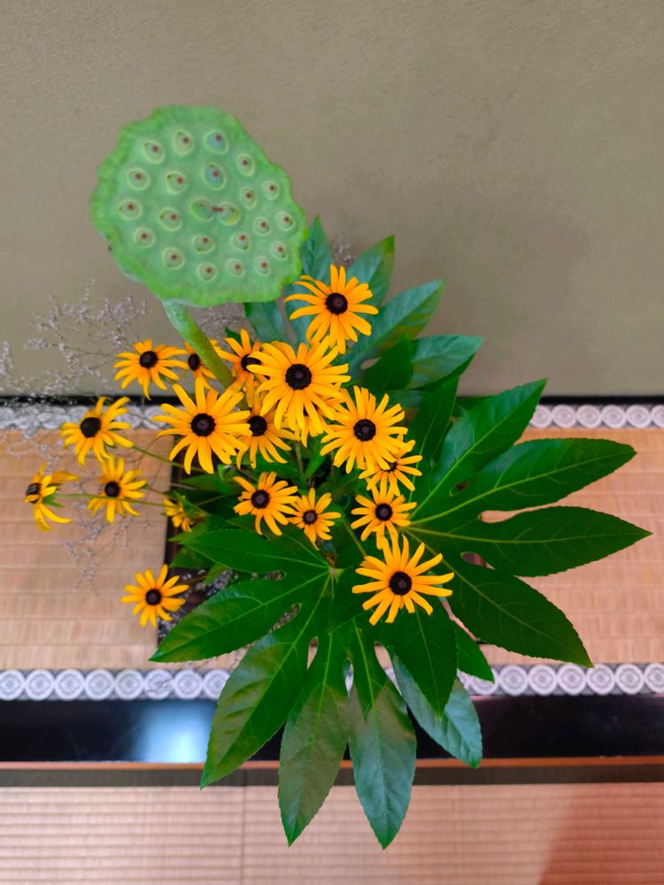 ハスの花托(かたく)・ルドベキア・ヤツデかな🤔