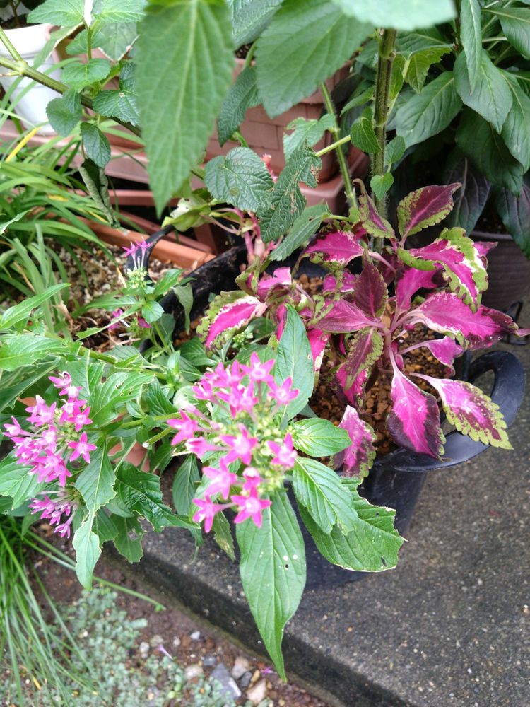 ピンクの葉が鮮やか。寄せ植えのアクセントに追加しました。