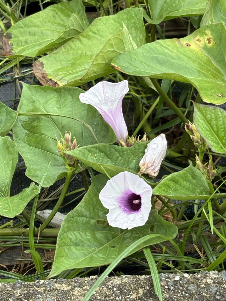 ❹昨年に初めて見た「サツマイモの花」が今年も同じ畑で咲いてます。