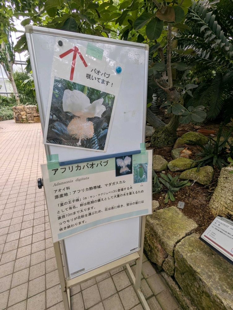 一昨日の午前中に植物園に行ったところ、珍しい🤍バオバブ🤍のお花を温室で見ることができました🤩💖