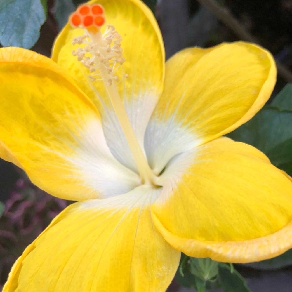 黄色のハイビスカス🌺さん、真ん中が白くて変わってますね🥰可愛いね💛