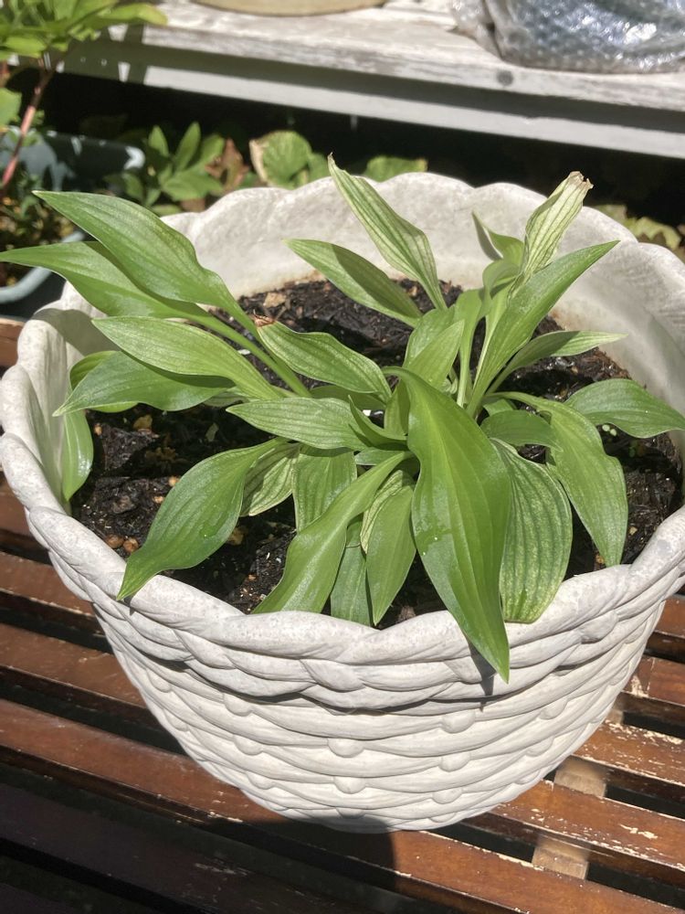 春 一番に開いたギボウシのホワイトフェザーです