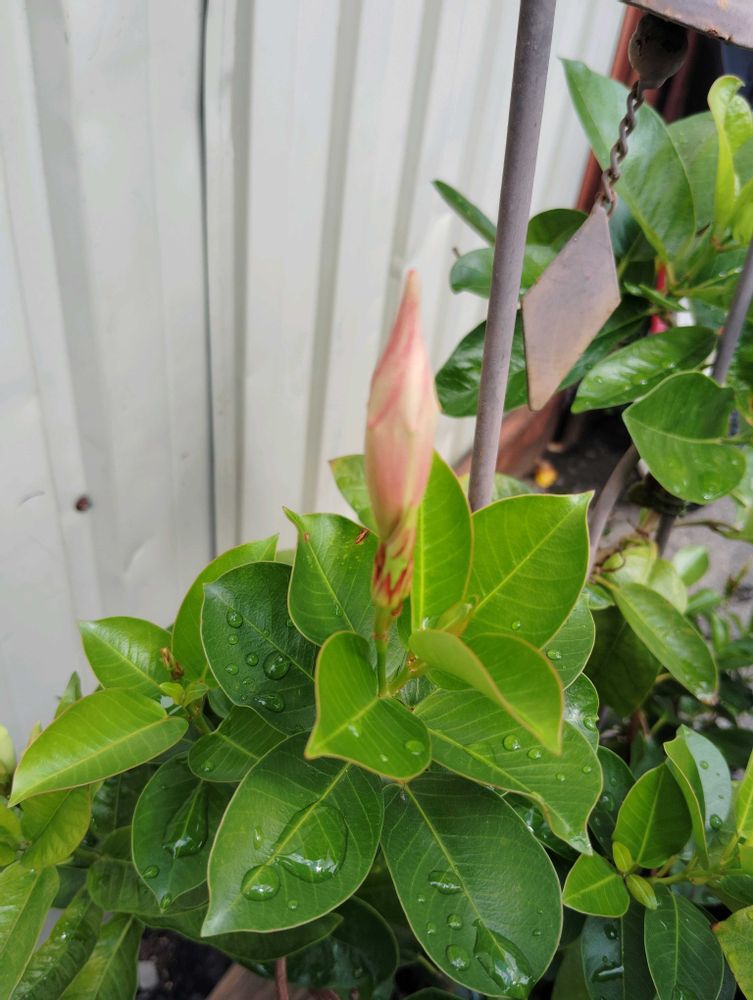 厚い葉の🤍白が蕾いっぱい有るけれど、やっと咲きました。