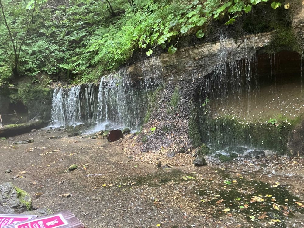 高さもそんなに高くないところから横長にどんどん水が流れ出ているんです。