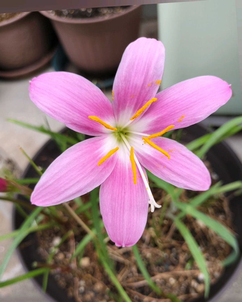 ゼフィランサスカリナタ(サフランモドキ)が4輪咲きました🩷🩷🩷🩷🤗