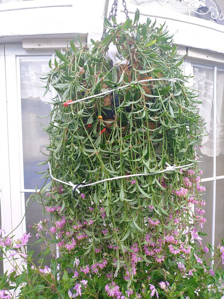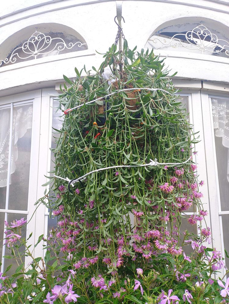 ここが立性植物とハンギングの相性が悪いとされる原因なのですが 上方向に伸びてしまったので