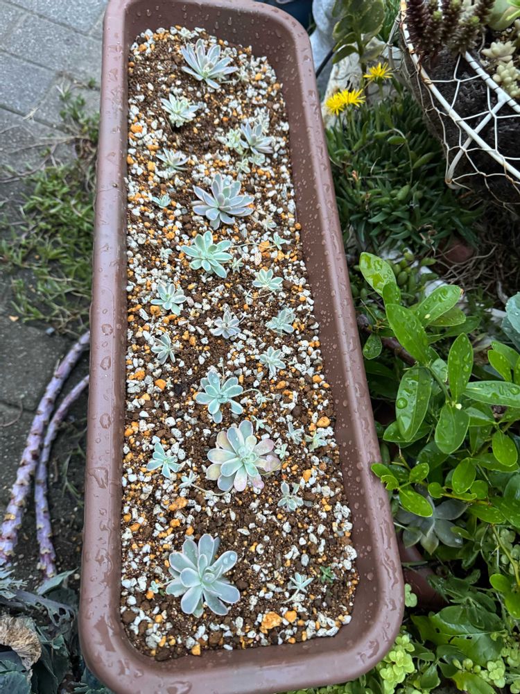 また鉢からあふれてきたのではみ出た苗を今度はプランターに植え替えてみました😆