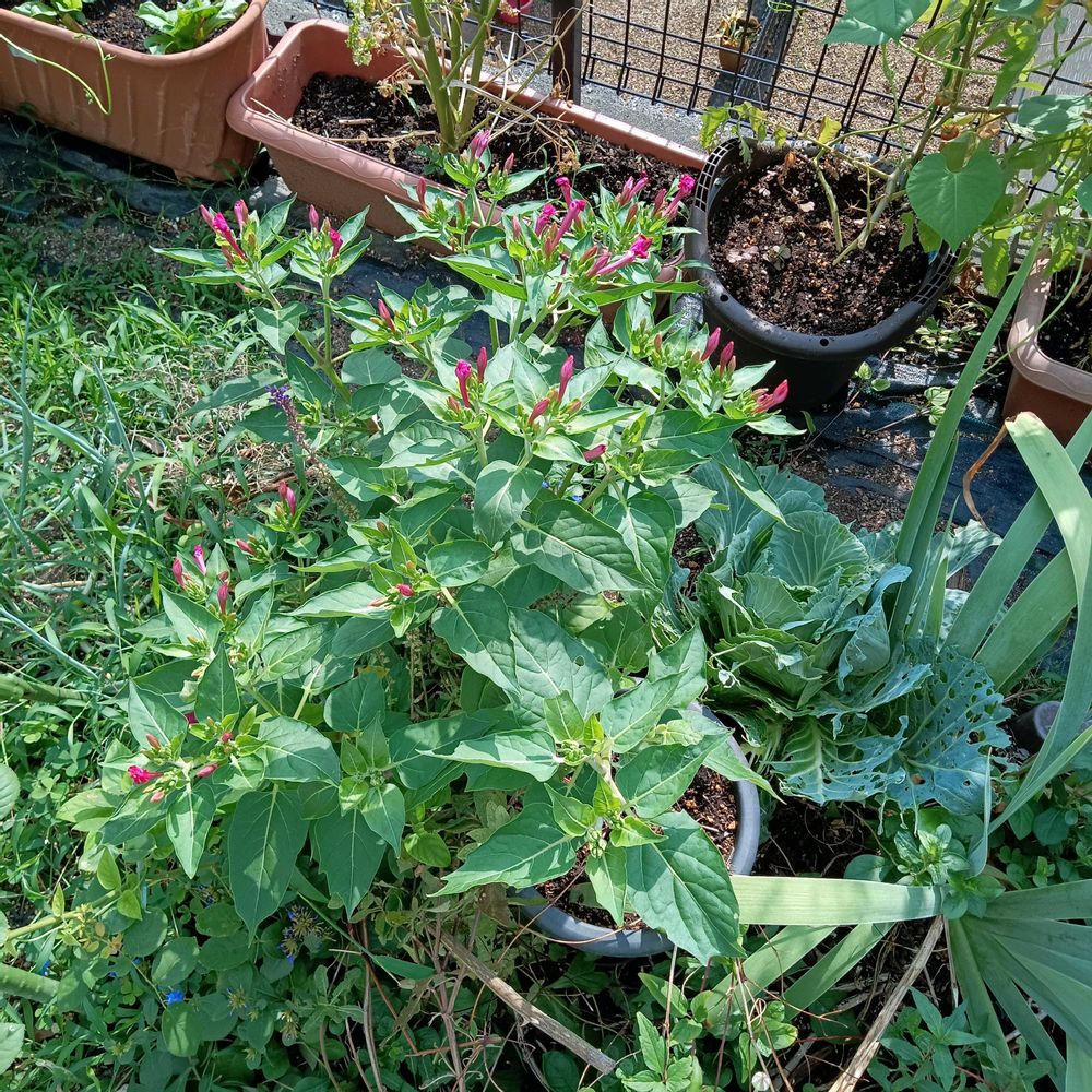 5️⃣こぼれ種のオシロイバナも蕾がたくさんついてます😄