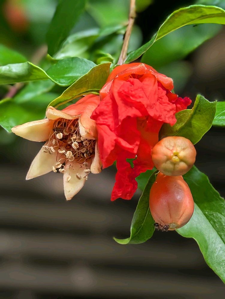 ザクロの花、この状態は見ていませんでした❣️もうちょっと蕾んでいるのと実のみ見ました♪