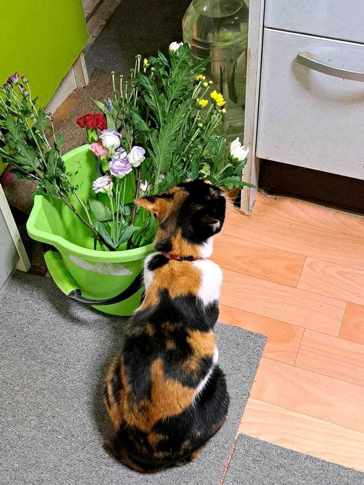 やはり女子(♀😺)なのか料理をしていたり、こういうお花の作業をしだすと必ず興味津々でやってきます。