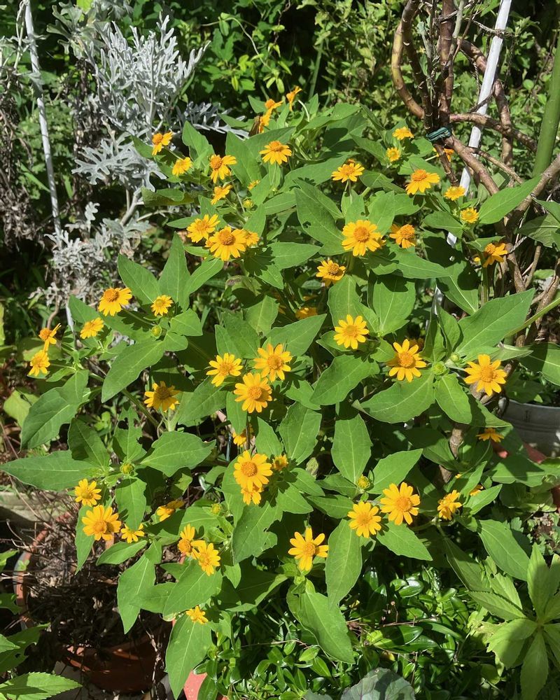 メランポジュウム、花が終わりましたが零れ種から芽が出ています
