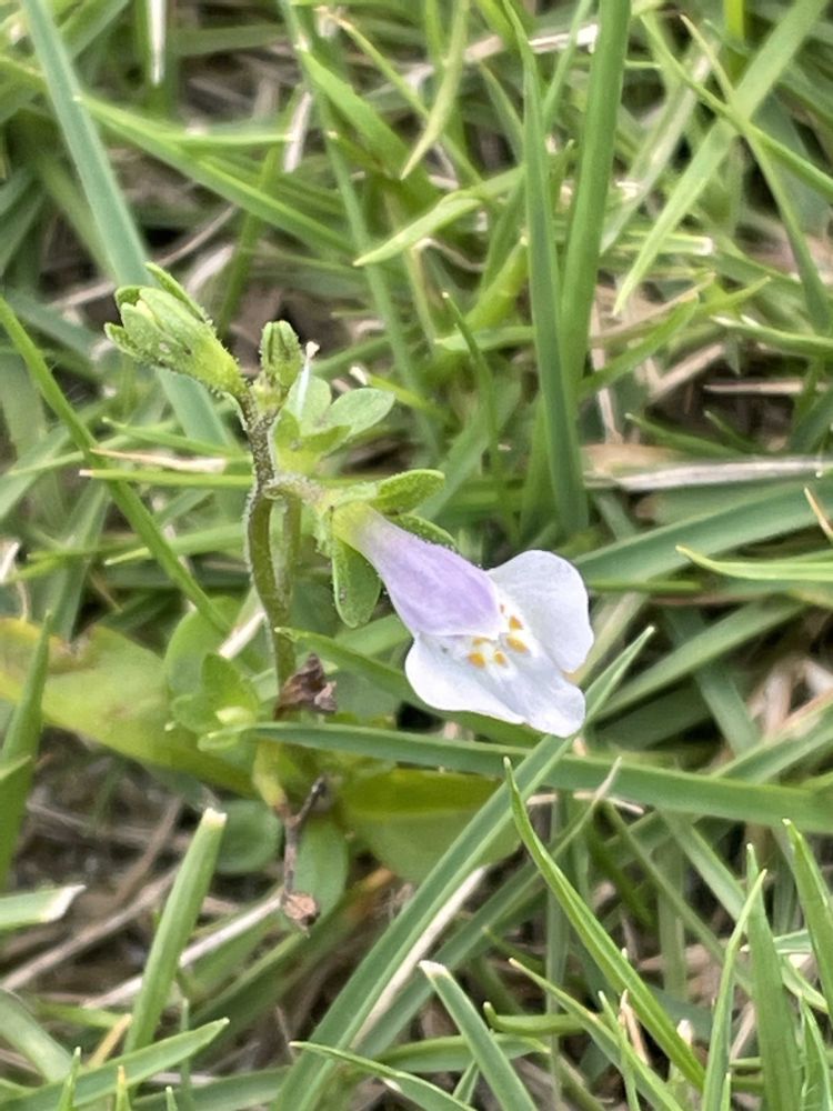 トキワハゼ(常磐爆)ハエドクソウ科サギゴケ属の一年草。芝の間から顔を出して、花を付けていました。以前の庭では、良く出て来て、花を付けていました。馴染み深い、可愛い娘です。「雑草という名の草は無い」。牧野富太郎の言葉の言葉です。正にその通り、と思います。