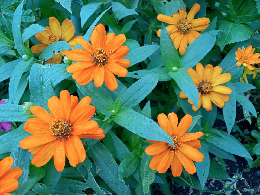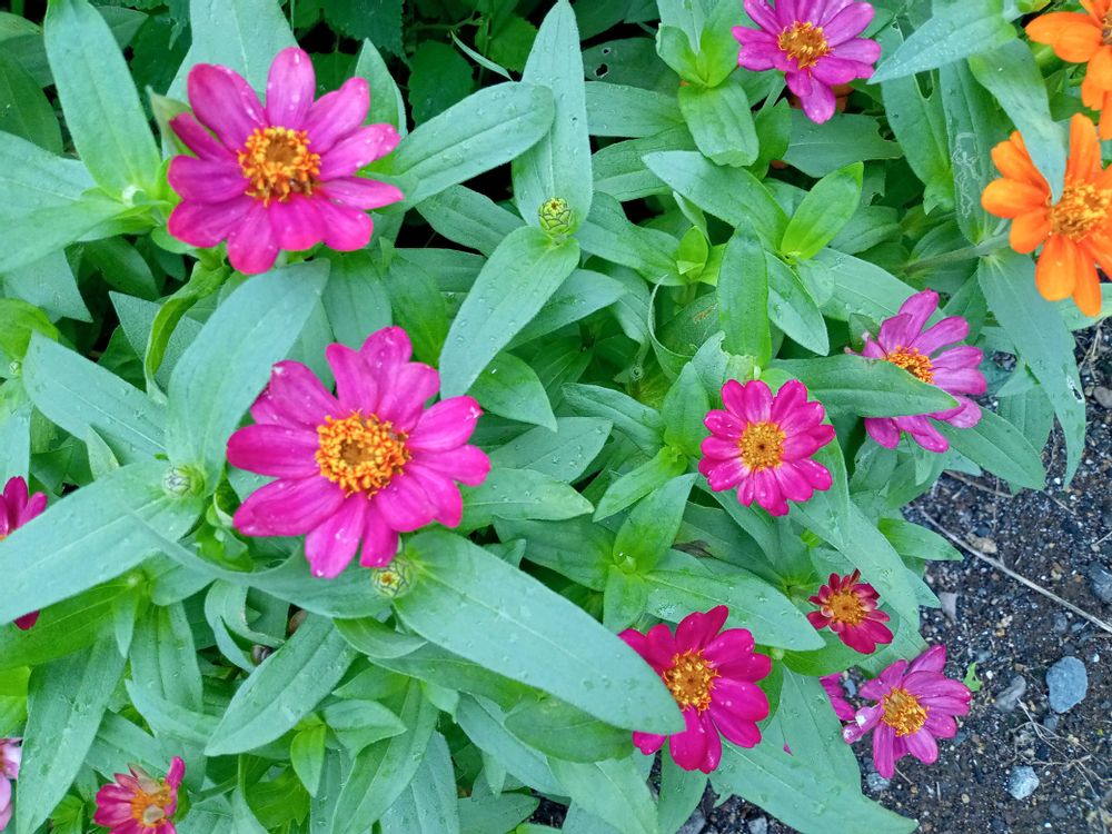 ばら撒きしたジニア、咲いてきました。お花がやっと増えてきた。