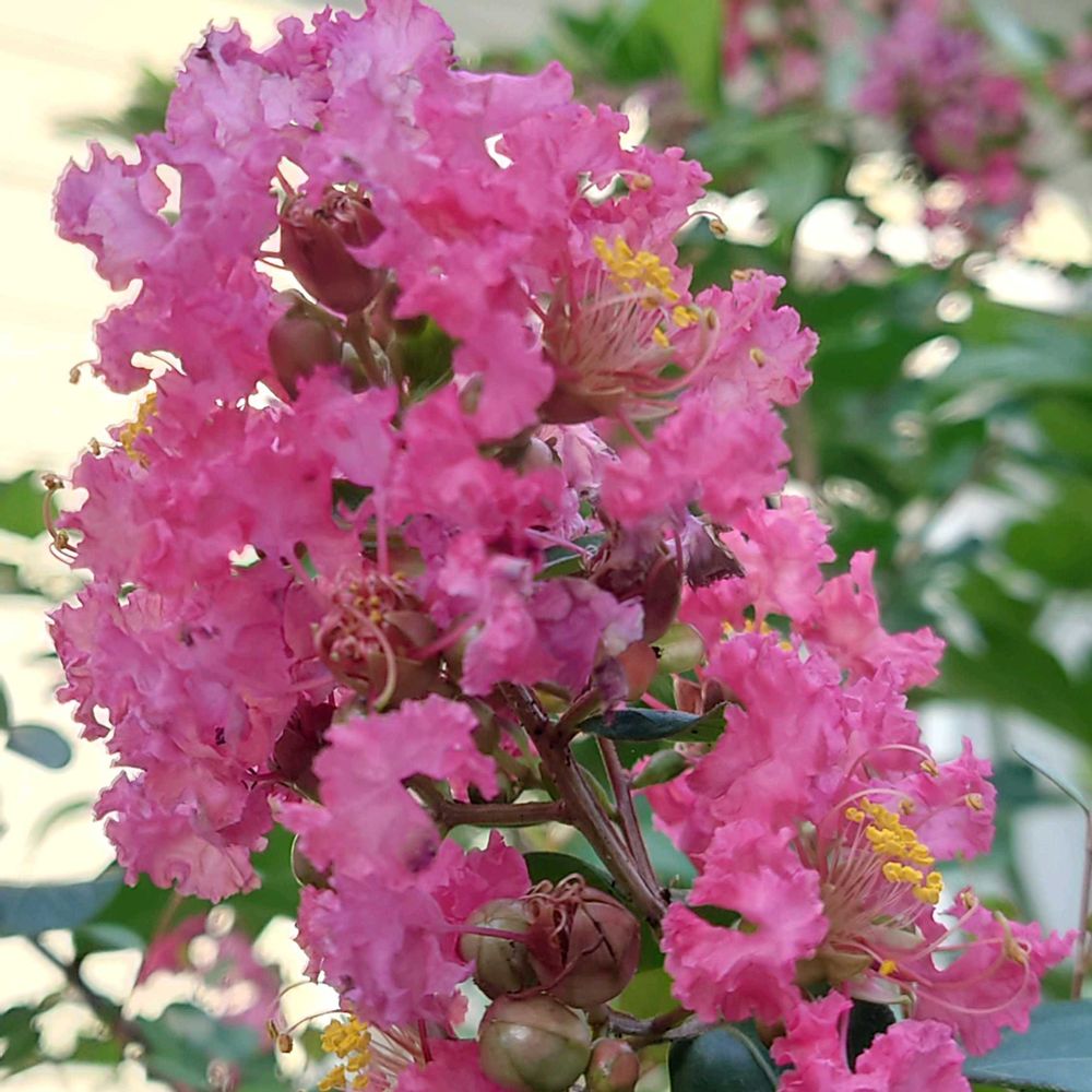 庭のサルスベリは咲き初めたらずーっと咲いてる〜何時まで咲くのかな?真夏に花が咲いてるのは有り難い🩷💕