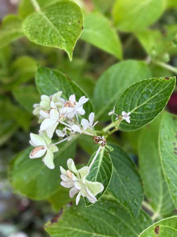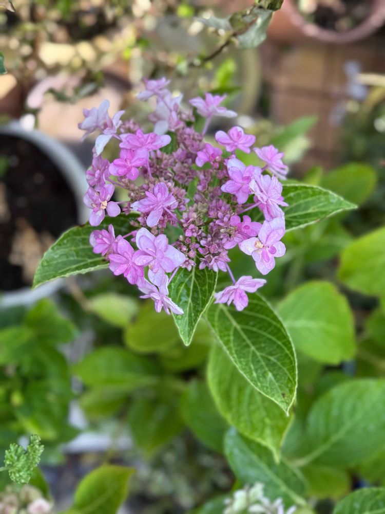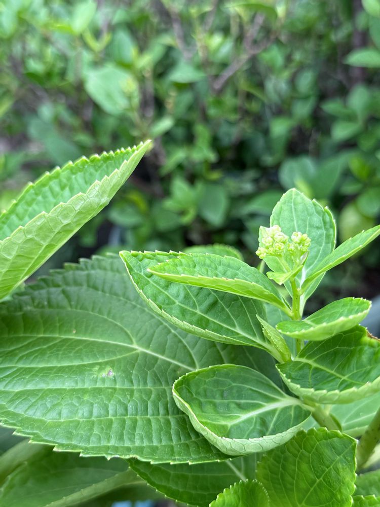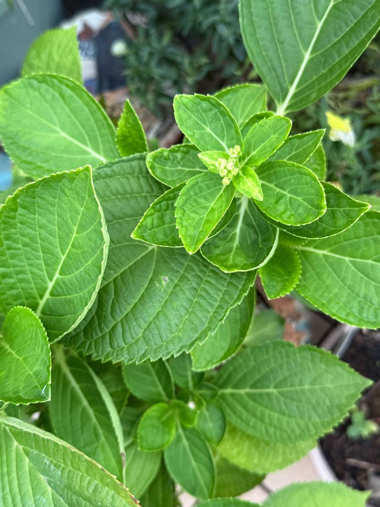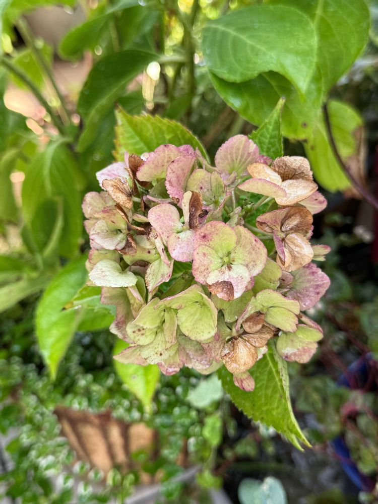 まだ紫陽花が灼熱の中ひと鉢頑張ってくれています