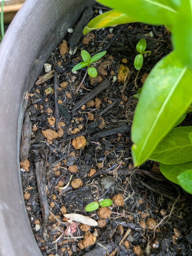 花友さんから聞いて、根元を見ると、こぼれ種からの発芽。藍染絞りだけ。