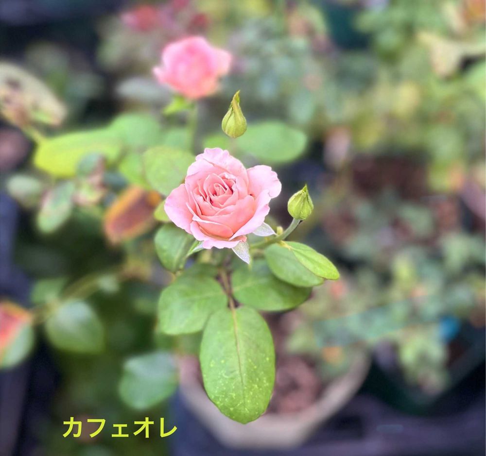 GreenSnapのご縁で地元で集まった植物たち元気です。(バラカフェオレ)←間違えたカフェラテシコンノボタン ルリヤナギ ケイトウ霧島の秋&コリー 感謝☺️