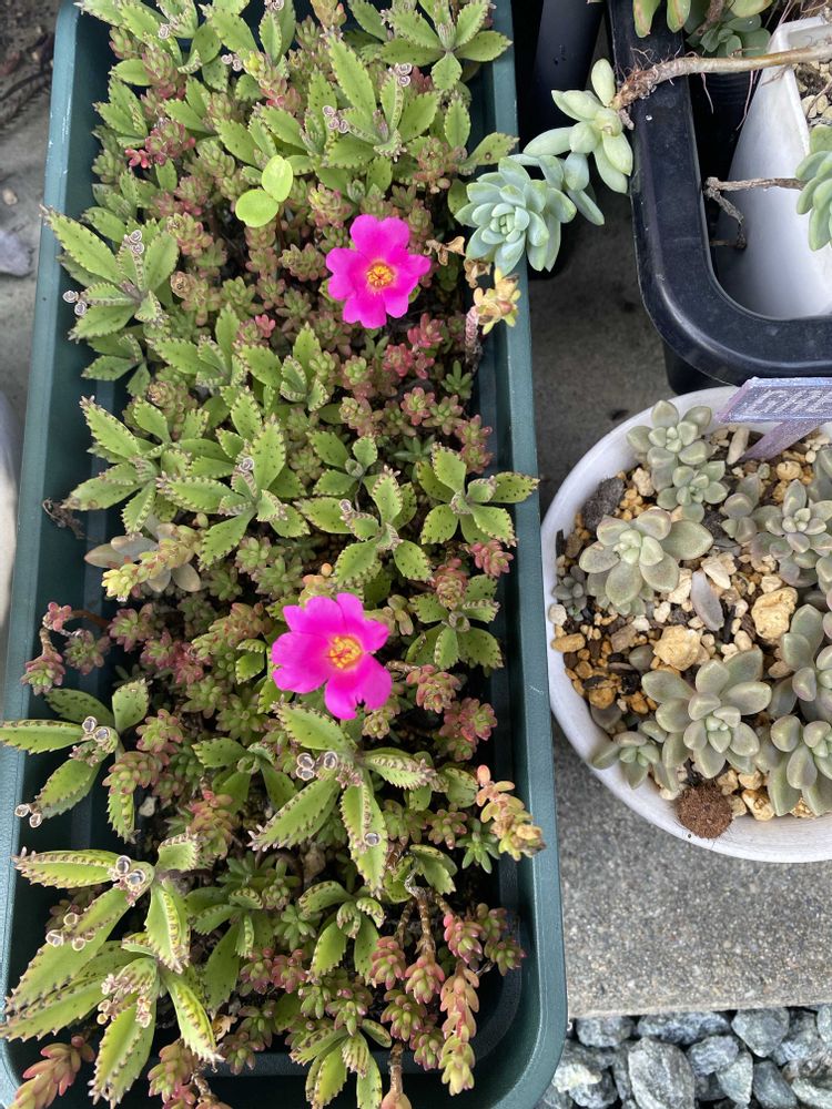 ホントほんと‼️不死鳥🐦🔥の葉とピンキーの花🌸が目立つので、変わった寄せ植え(セルフ)になっています😆