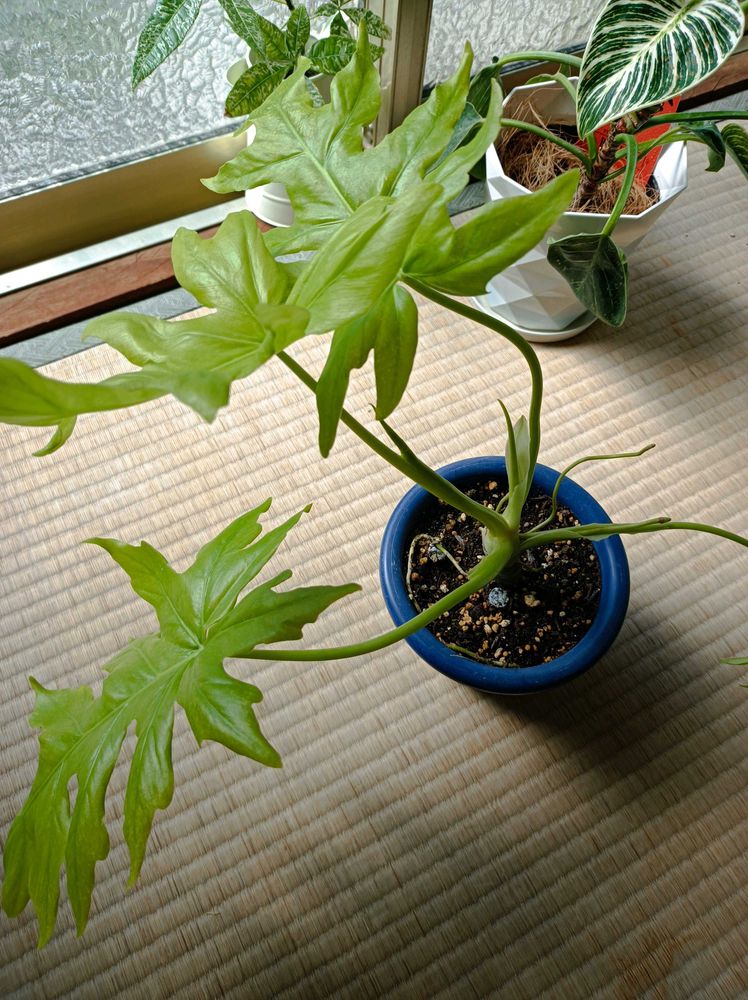 我が家の環境に慣れてきたのか、新しい葉が出て…古いのがひとつ落ちたんですが、元気に暴れまわる葉に癒される毎日です。