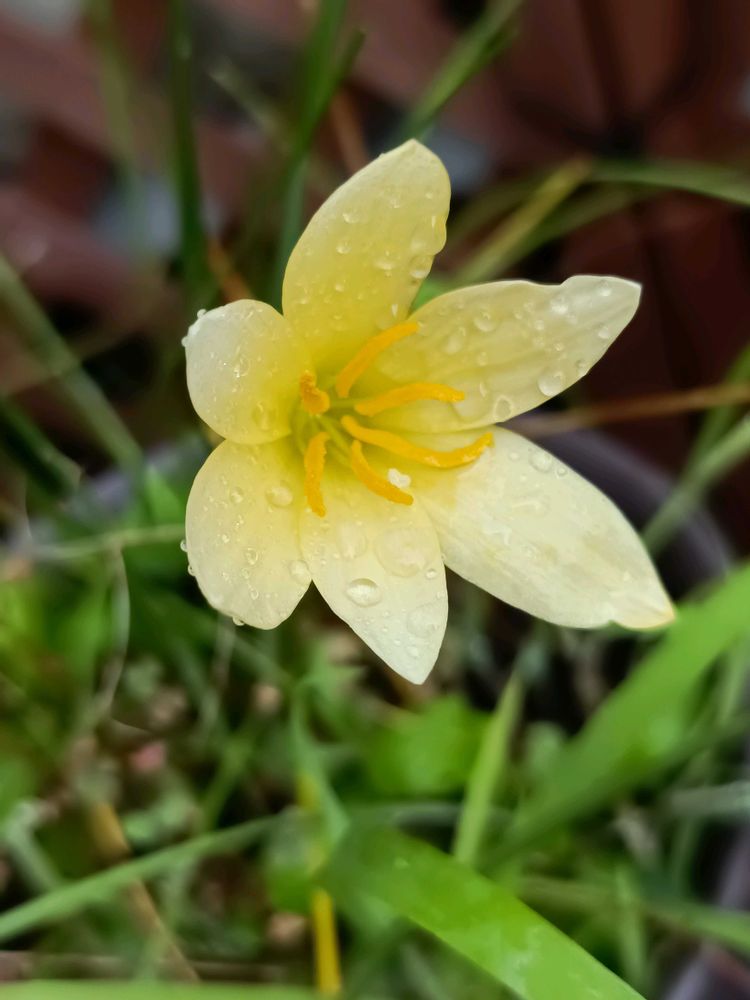 今朝の🐶の散歩で、小学校の塀沿いに黄色のタマスダレが咲いているなあと見ていたら、我が家もこの1輪咲いていました😅