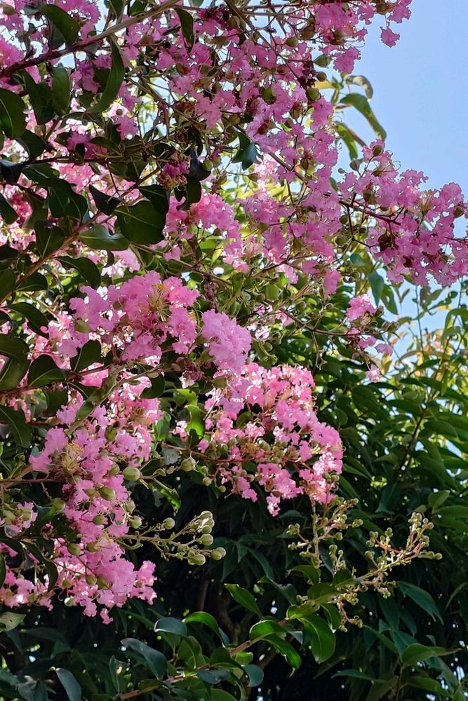 ① ご近所さんの真っ赤なサルスベリはお空に向かってぐんぐん❤