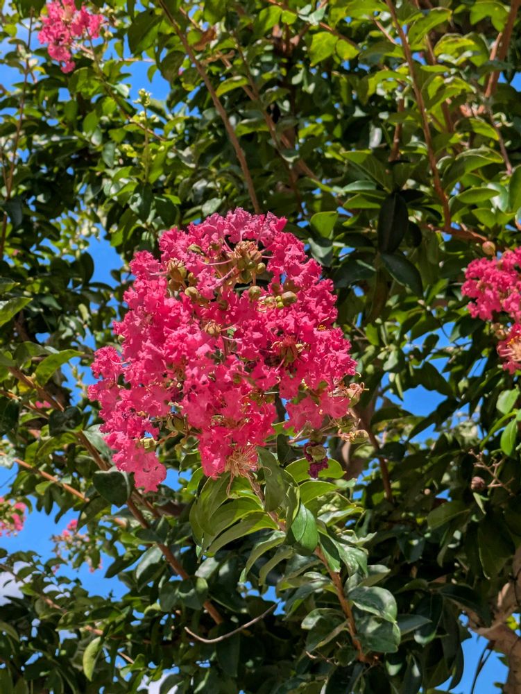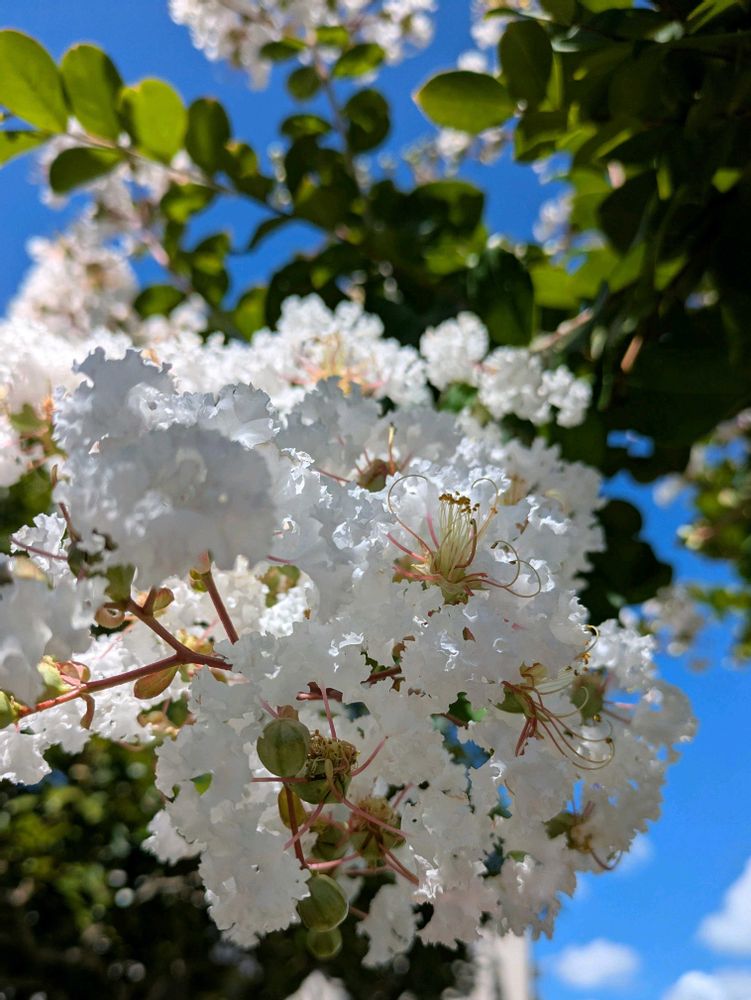 レッド、ホワイト、ピンクのサルスベリとブルーの空(◍•ᴗ•◍)❤