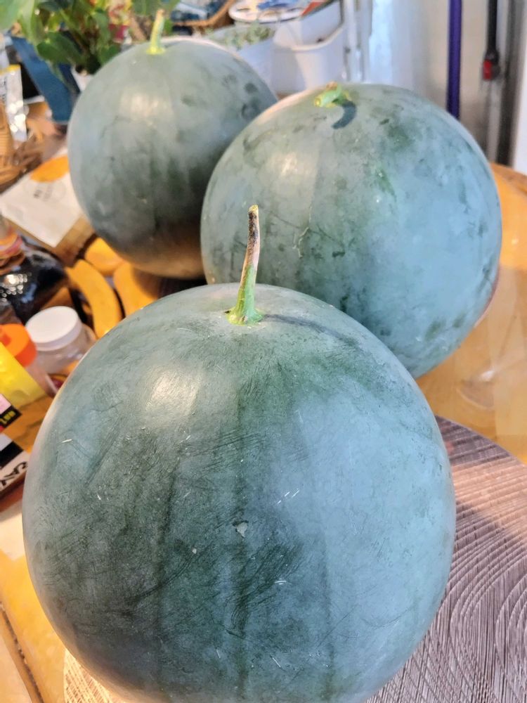いつも小玉西瓜と中玉くらいを育てるのですが、今年はこんなに大きくなる品種でした😅