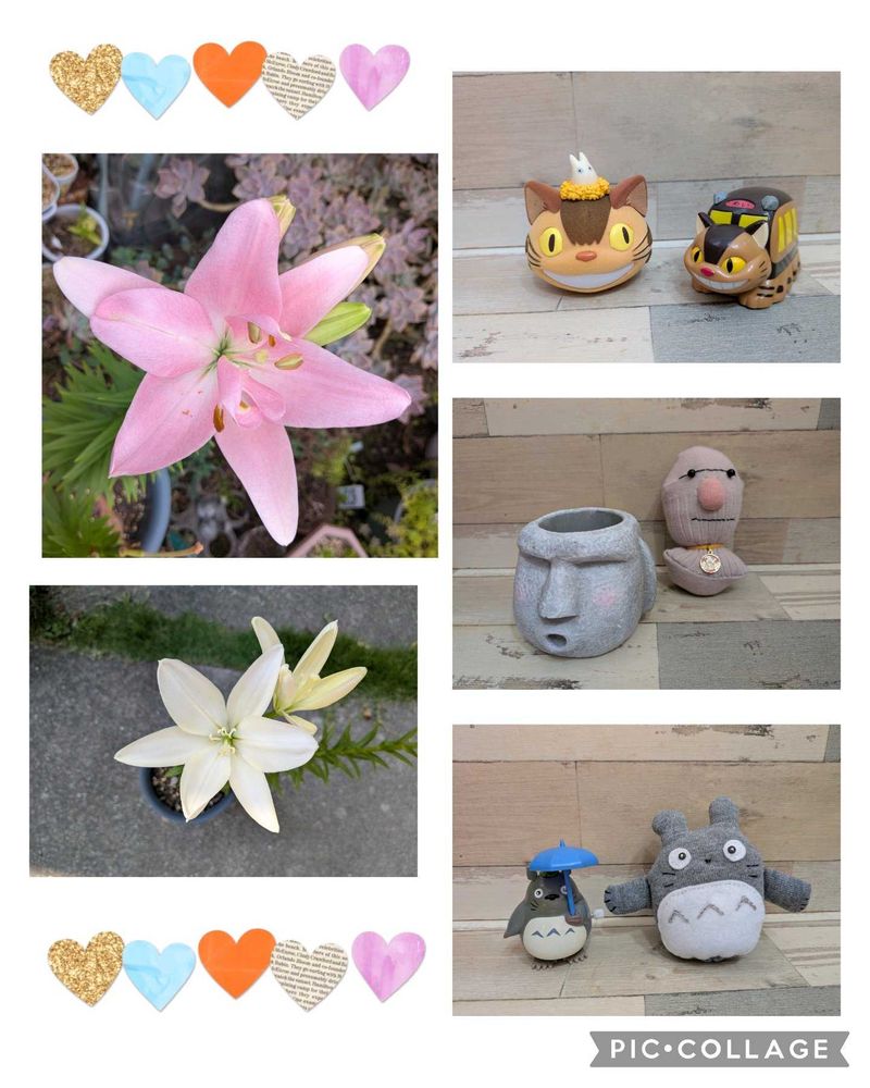 白の百合は勝手に色んな鉢からいっぱい生えてるよ。