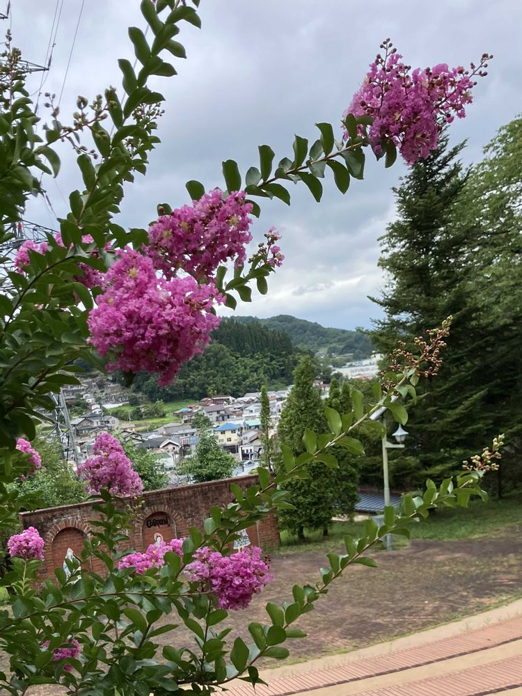 ちょっと歩くと一面山とサルスベリが見渡せますよ😍⛰️🌳🌸