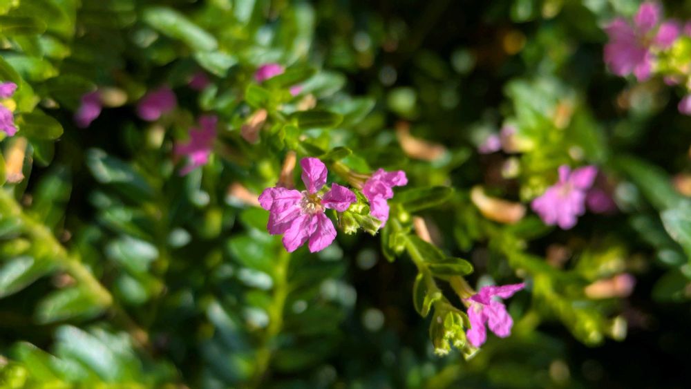 散歩道🚶、花壇にクフェア、スベリヒユが植えてありました🌸🌸