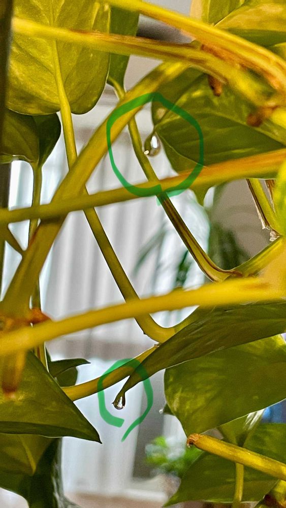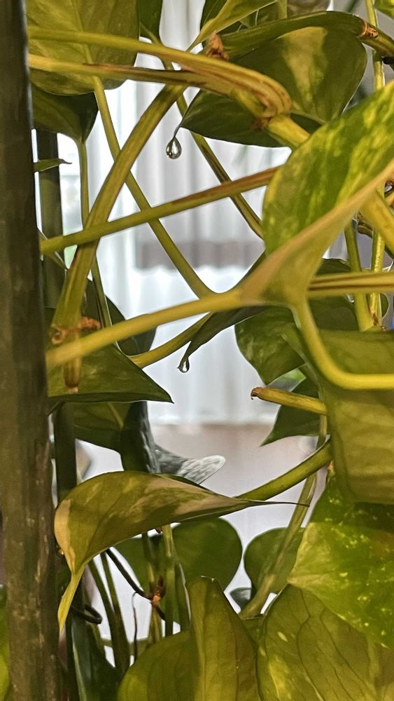 ある日何枚もの葉っぱからキラキラとした滴がいくつも💧💧💧😢