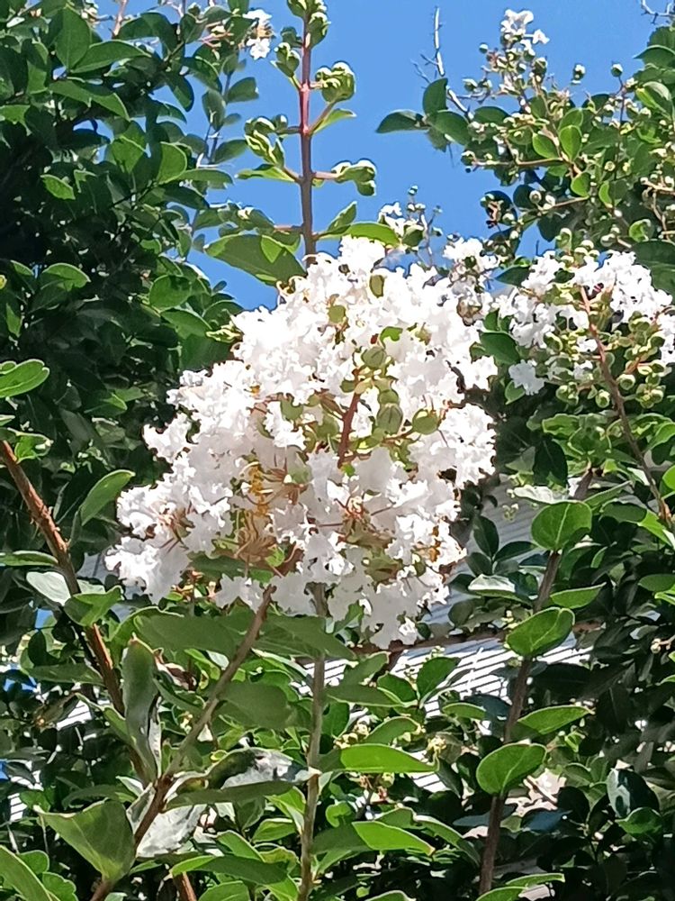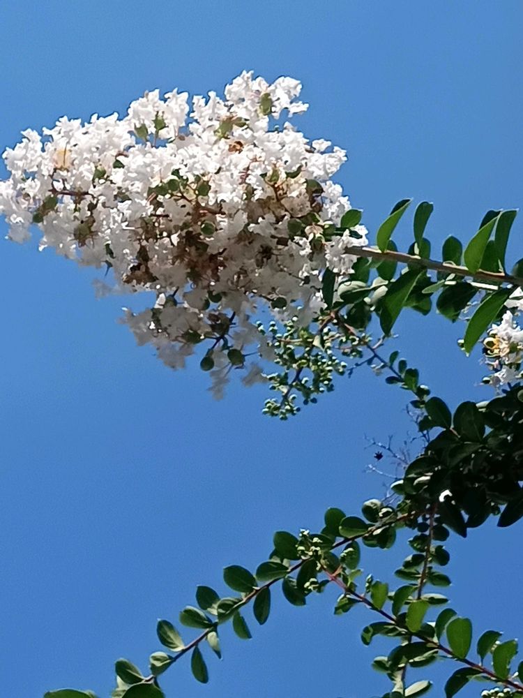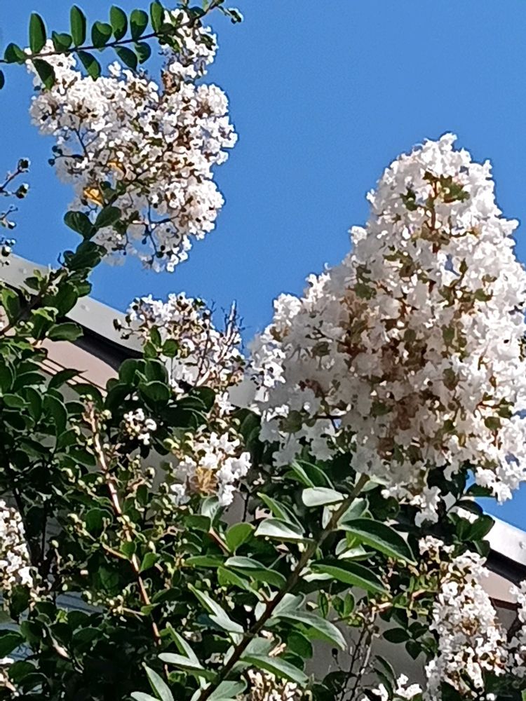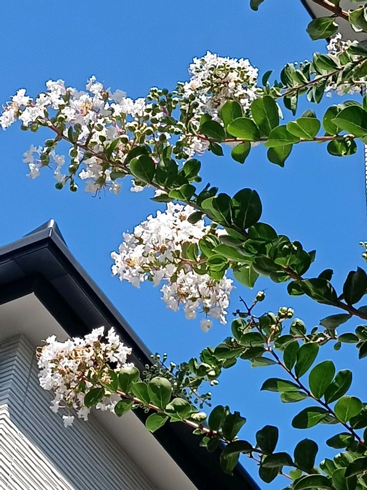 青空にサルスベリの白いお花が、綺麗です✨️🤍🤍🤍