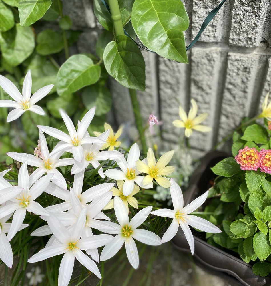 こんなに咲くのは初めての白とクリーム色のタマスダレ😳