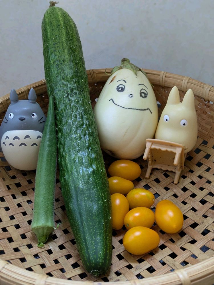 トトロ達の顔見てたら白ナスにも目、鼻、口描いてみた😋😉最後に眉も(笑)