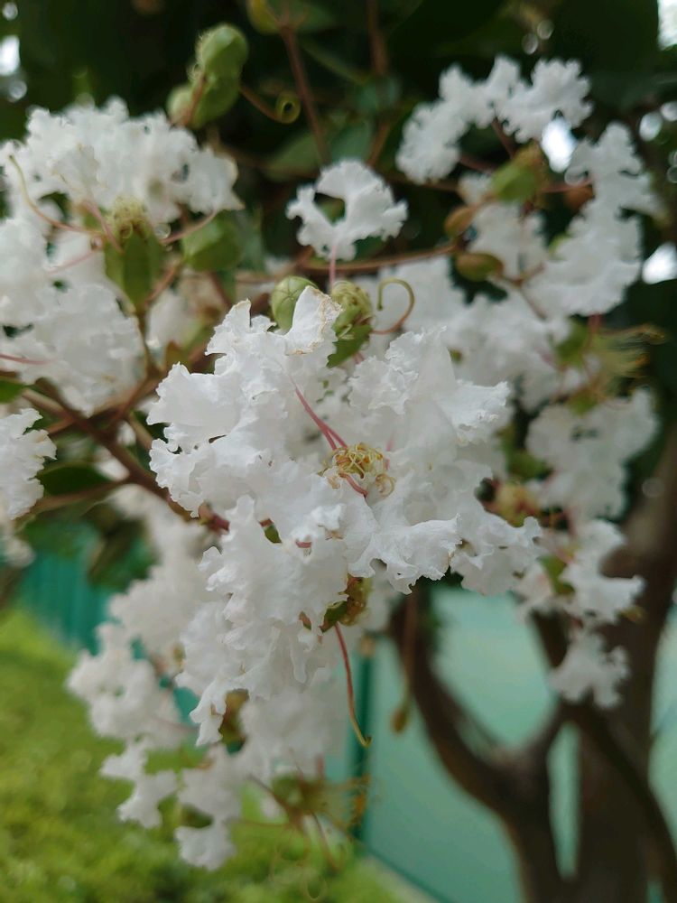 1️⃣白いサルスベリ🤍テニスコートの歩道沿いにふんわり咲いています😊🤍