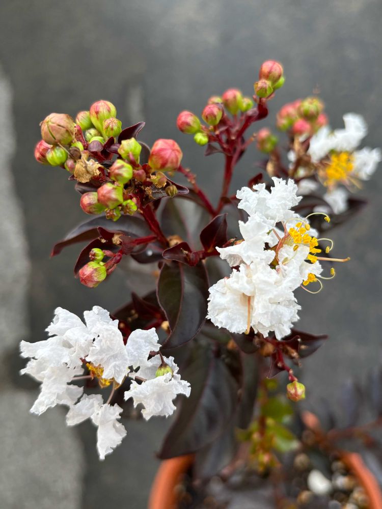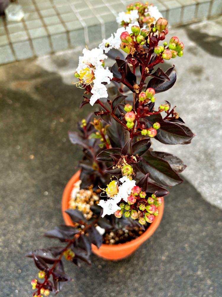 『サルスベリ』矮性のものもあるんですね❣️つぼみがピンク🩷で咲くと白🤍