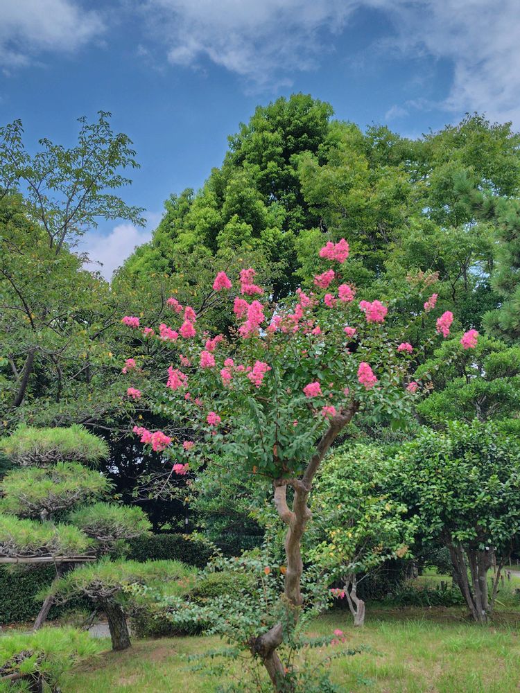すべすべした幹肌が特徴で夏から秋の長期に渡って紅色の花が咲く。
