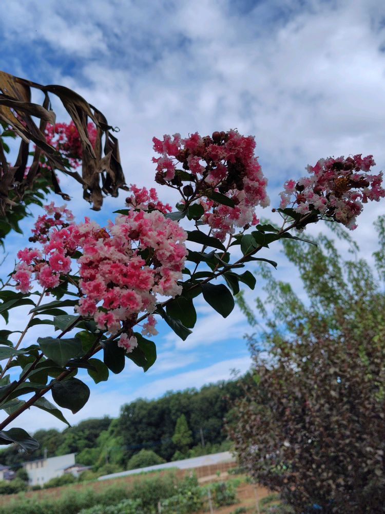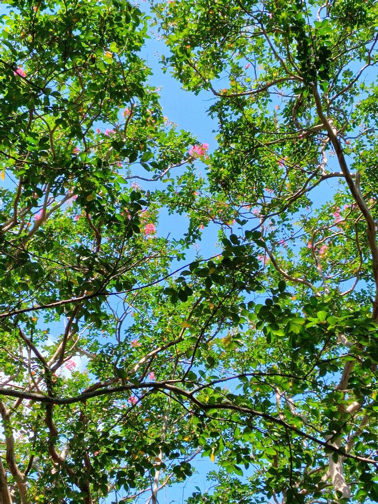 剪定されないサルスベリは樹形が複雑で、お花も上の方に少しだけ咲いていました。